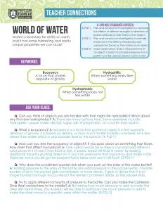 BUOYANCY: A force that pushes in the opposite direction of gravity.